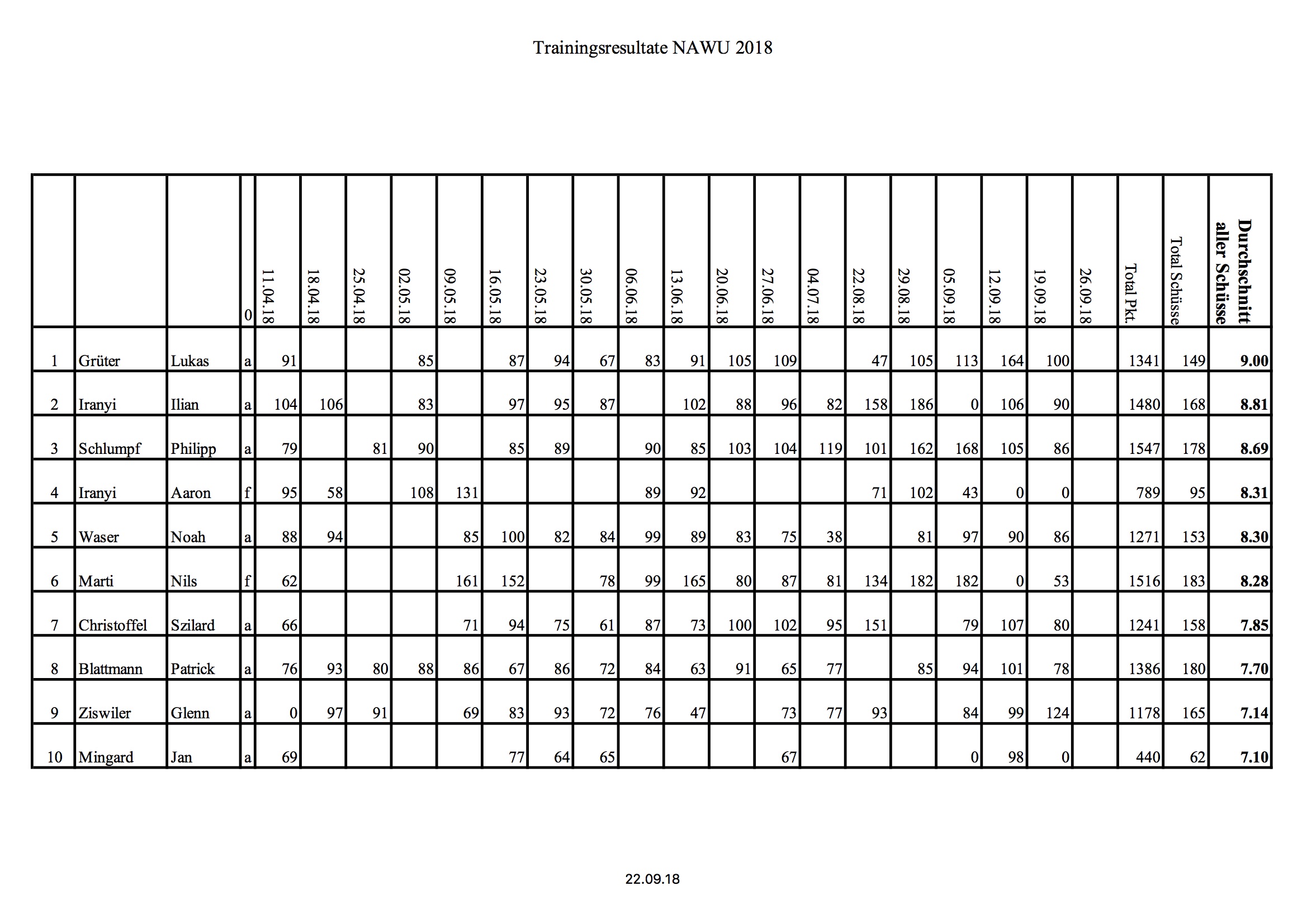 Trainingsrangliste 2018
