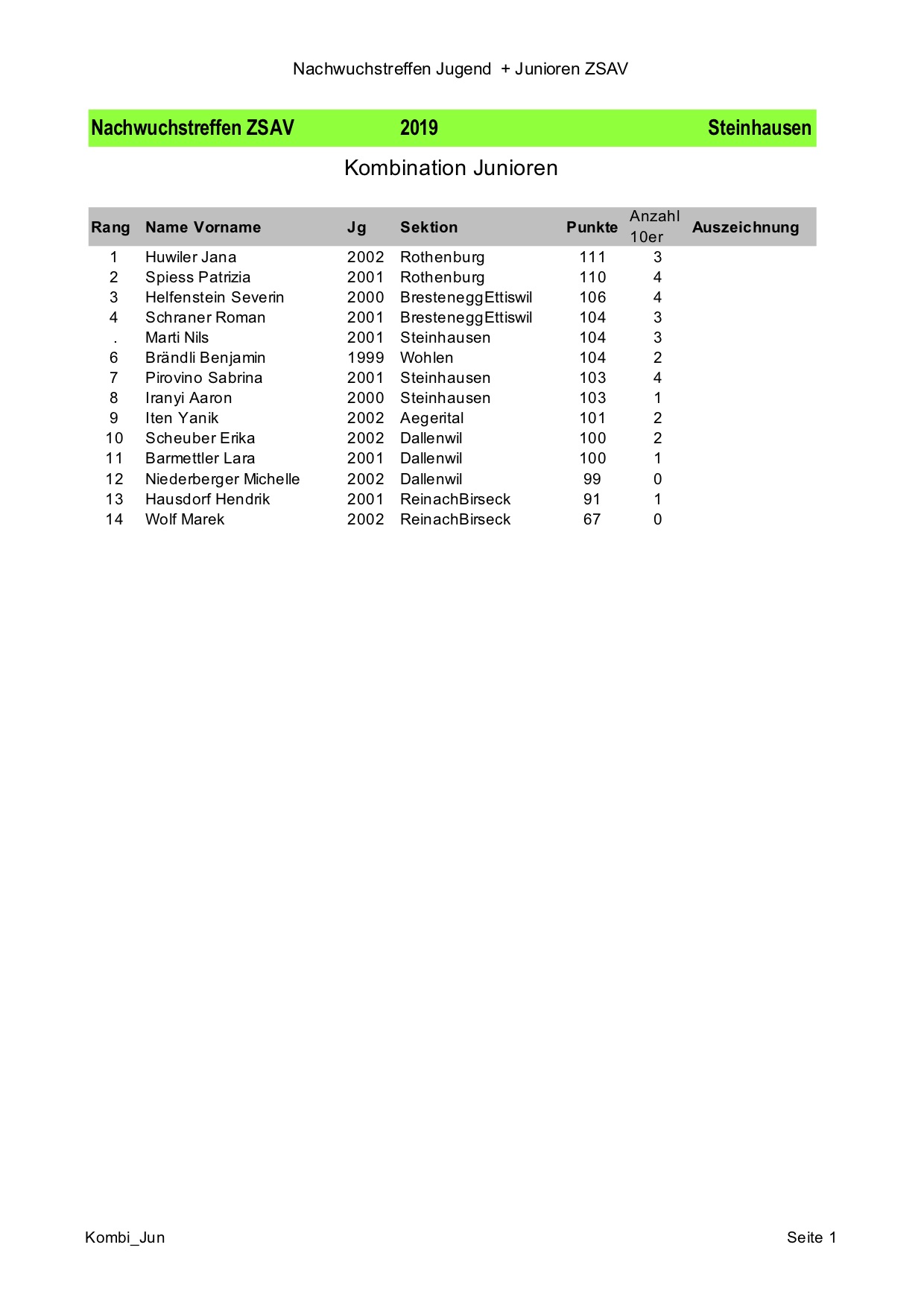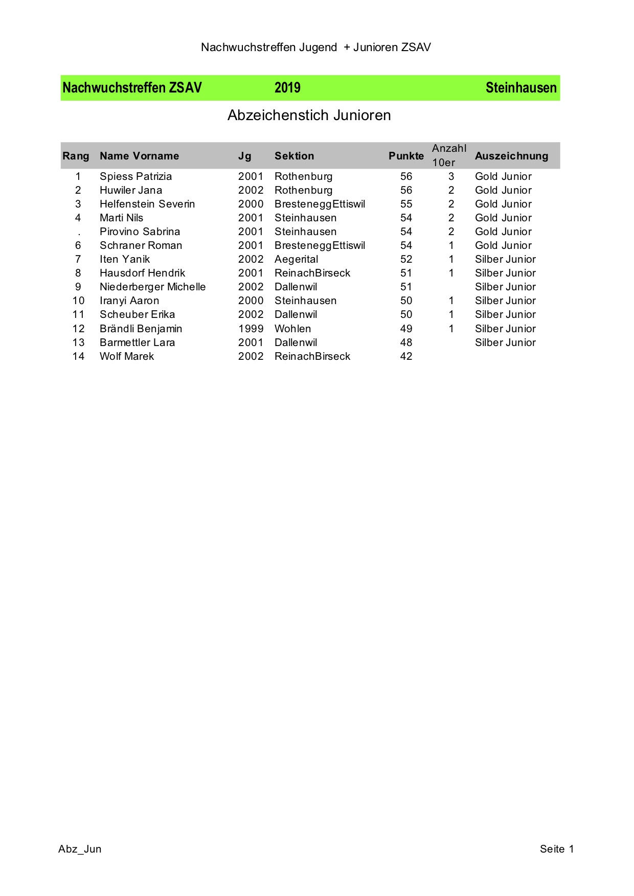 Nachwuchstreffen 2019